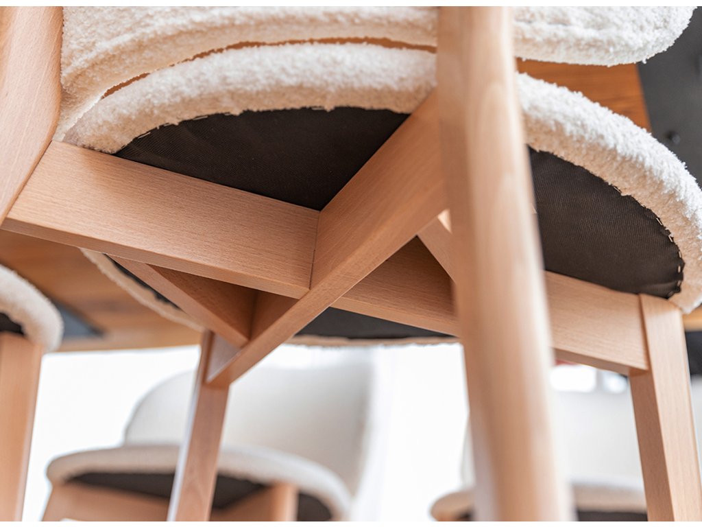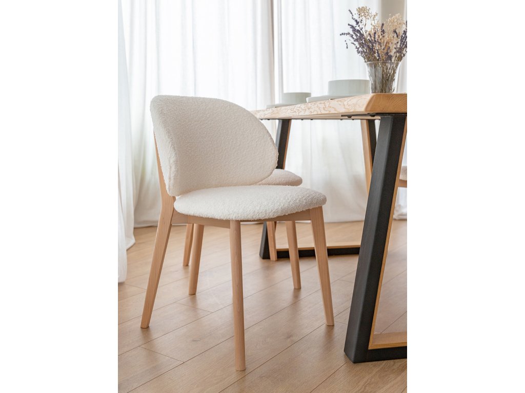 Židle Bukla krémová čalouněná s dřevěnými nohami CM01